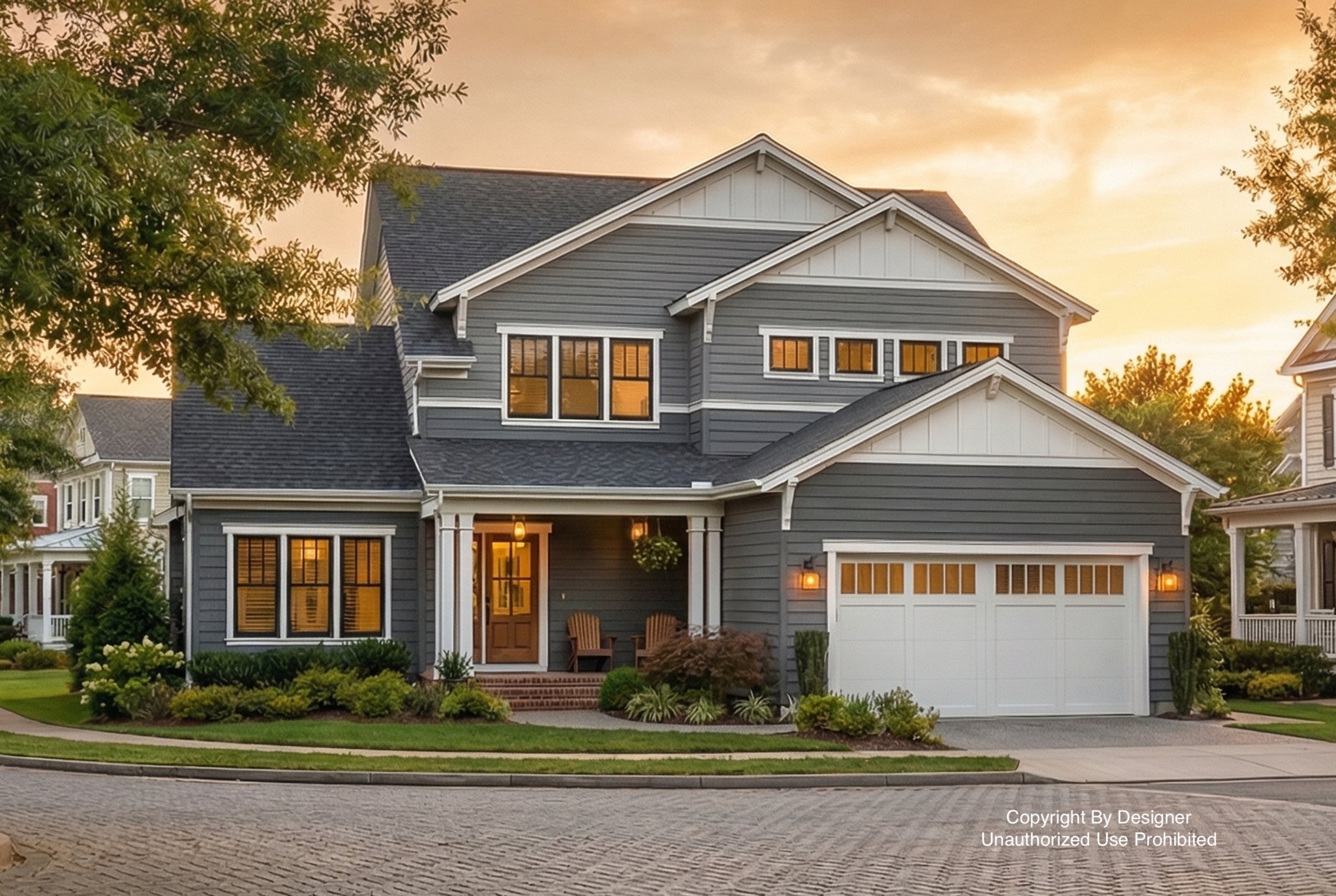 This inviting bungalow-style home blends classic charm with smart, efficient design. The main floor features an open-concept layout that connects the kitchen, dining area, and great room, offering a warm and functional space perfect for both daily living and entertaining. A covered front porch adds to the home’s traditional bungalow character, creating a welcoming entry and a cozy spot to relax outdoors. The primary suite is conveniently located on the main level, complete with a walk-in closet and private bath. A mudroom with laundry and direct access to the two-car garage adds convenience and helps keep the main living area tidy.