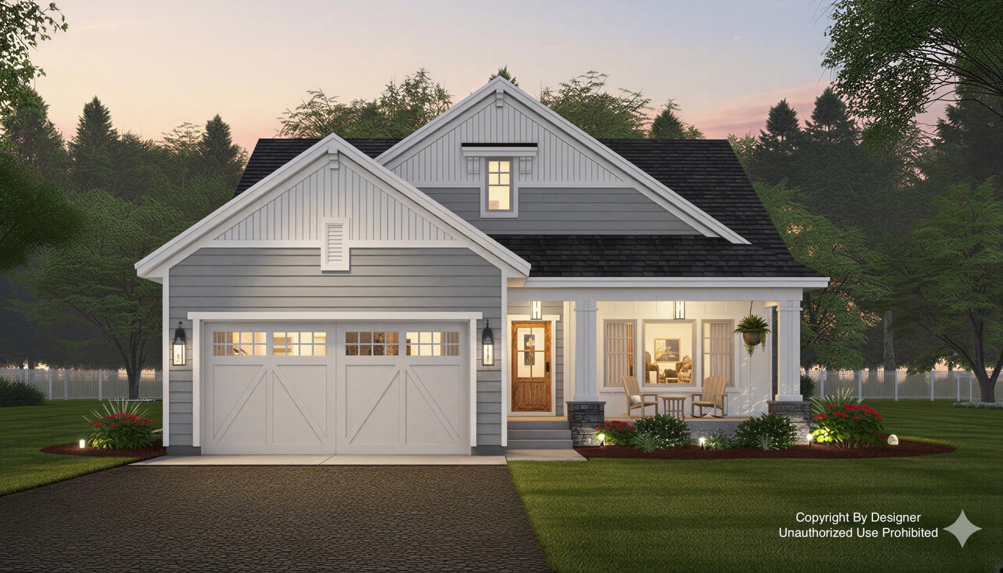 This beautifully designed Craftsman-style home offers 1,568 square feet of comfortable and efficient living space. With three well-sized bedrooms and two full bathrooms, this thoughtfully laid-out, single-story home is ideal for families or those seeking the ease of one-level living. The open floor plan creates a seamless flow between the great room—featuring a cozy fireplace—the dining area, and the kitchen, which boasts a spacious island and walk-in pantry. The primary suite provides a private retreat with a large walk-in closet and an en-suite bath. Outdoor living is a highlight, with both a welcoming front porch and a generous rear porch for relaxing or entertaining. A two-car garage adds convenience and storage. Showcasing classic Craftsman details, including gabled rooflines and charming architectural elements, this home blends timeless appeal with modern functionality.