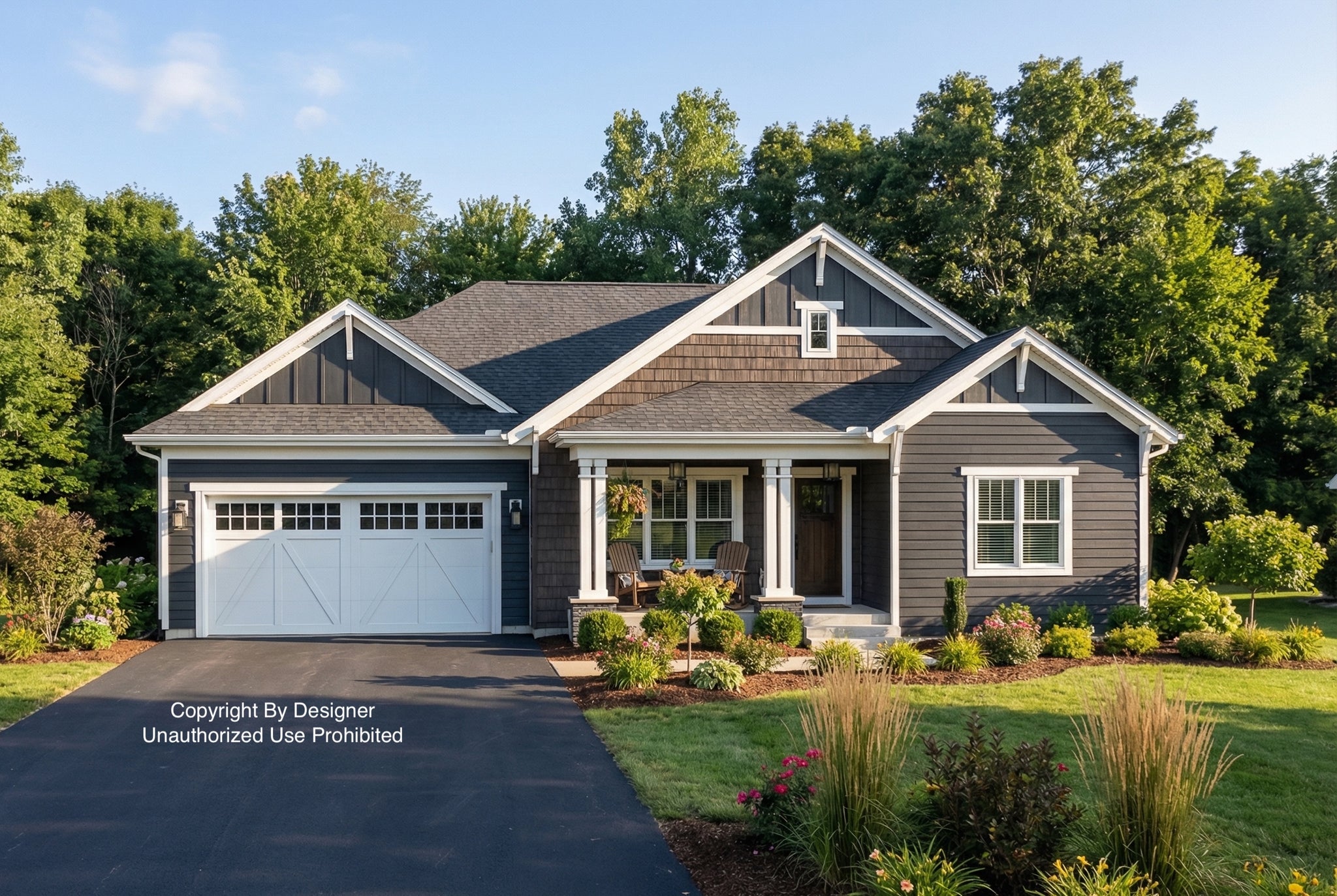 This 1,548 sq ft single-level craftsman style home exudes charm with an aesthetically pleasing exterior and an inviting front porch that welcomes you home. Inside, vaulted ceilings in the main living area create an airy, open feel, enhancing the spaciousness of the great room—a perfect gathering spot for family and friends. The well-appointed kitchen is designed with both function and style in mind, featuring an island with seating for three, a cozy dining area, and a large pantry for ample storage.