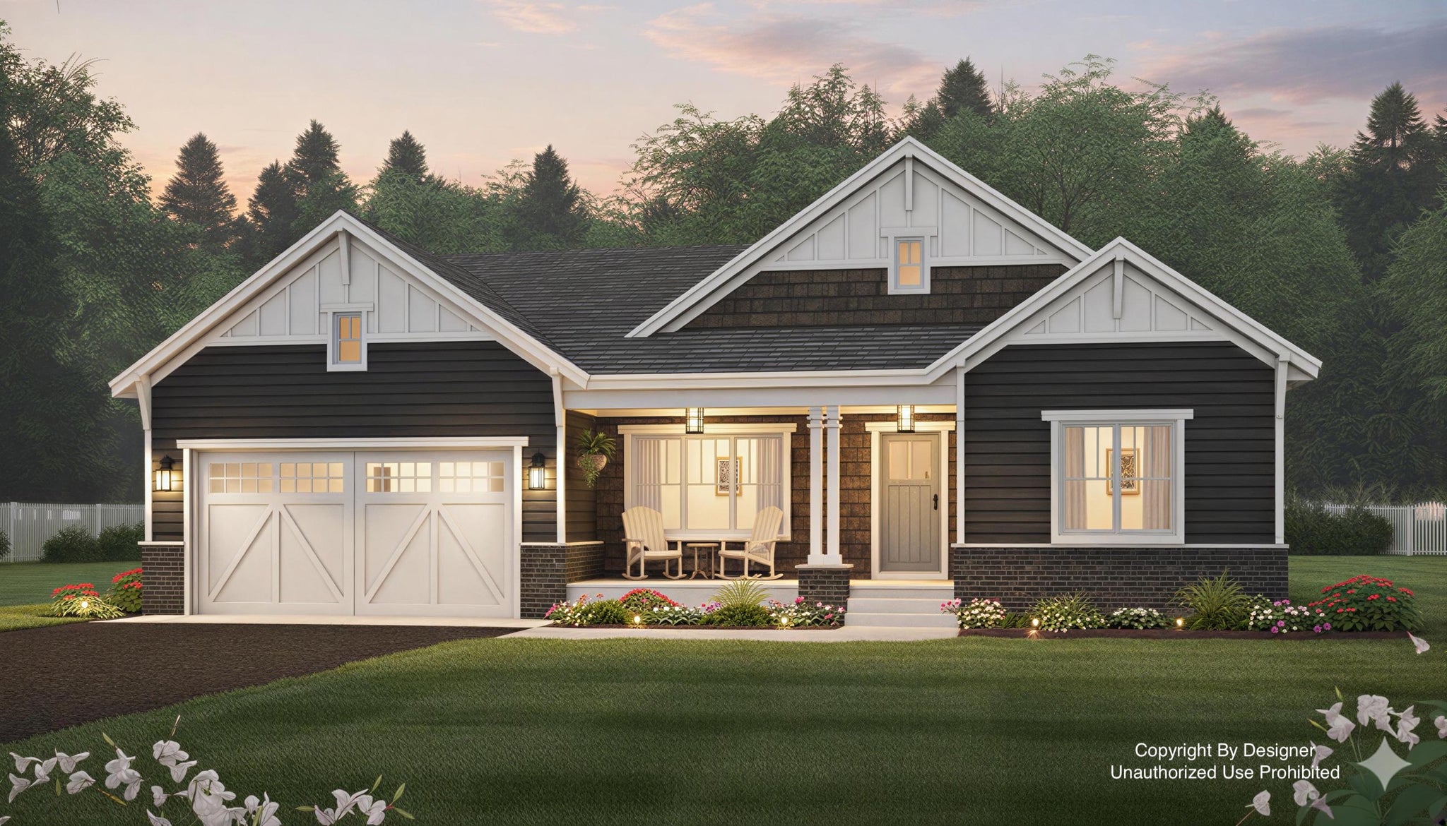 This exquisite Craftsman-style home spans 1,742 sq ft, boasting a welcoming front porch that invites you to enjoy the serene surroundings. Step inside to discover a spacious great room featuring impressive vaulted ceilings and sightlines throughout that enhance the open and airy ambiance, creating a perfect setting for both relaxation and entertaining. The thoughtfully designed kitchen is a chef's delight, equipped with a functional island that accommodates three, a sizable walk-in pantry for ample storage, and convenient access to the rear porch, ideal for outdoor gatherings. The tranquil primary suite serves as a peaceful retreat, complete with a cozy sitting area, an en-suite bath for added privacy, and a generous walk-in closet that provides abundant space for your belongings. Two additional bedrooms share a well-appointed Jack and Jill bathroom, while the versatile fourth bedroom can easily be transformed into a productive home office or creative space. Complementing this stunning home are the covered front and rear porches, perfect for savoring your morning coffee or enjoying evenings with loved ones in a charming outdoor setting.