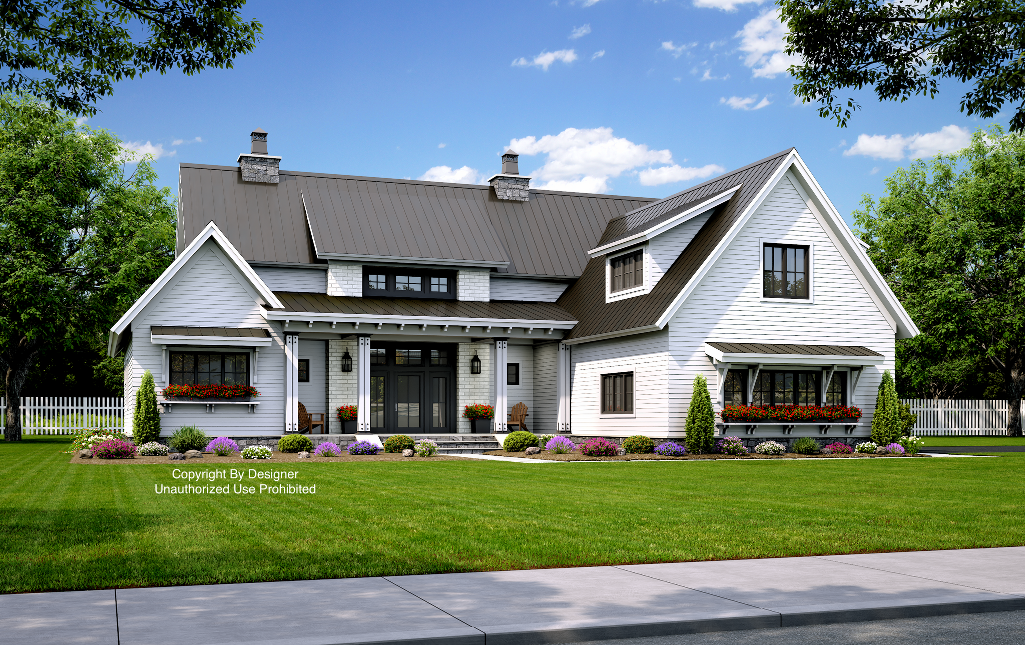 This charming two-story house plan, 4 bedroom, 2 & ¾ bath Modern Farmhouse with a 3-car garage would be a great place to call home! With 2528 sq ft of living space plus an optional 430 sq ft bonus room, you’ll have plenty of room! From the eye-pleasing covered front porch you’ll step into the bright open foyer and great room with 12’ ceilings and cozy fireplace. From there you can see straight through to the covered rear porch. Off the foyer is an intimate study with a sliding barn door.