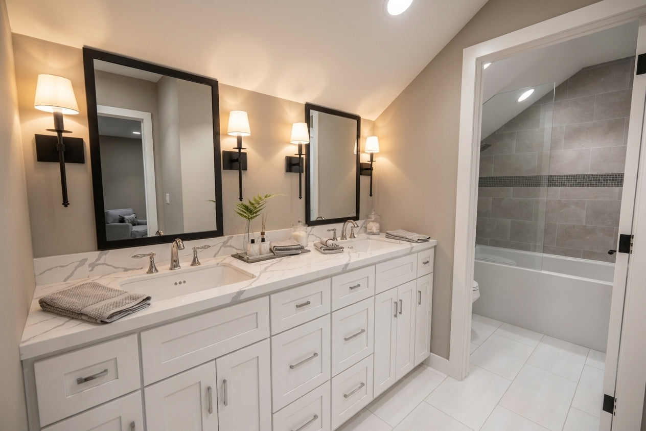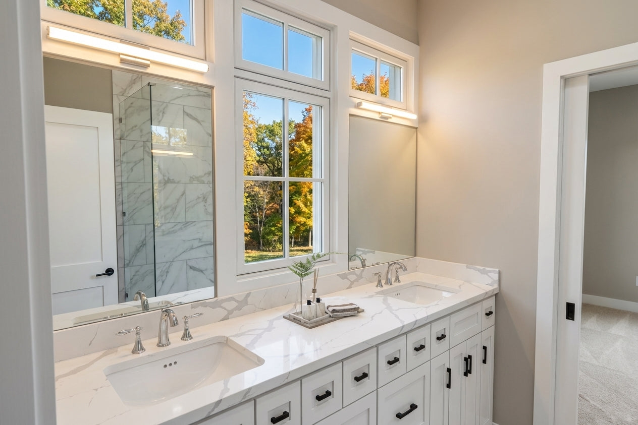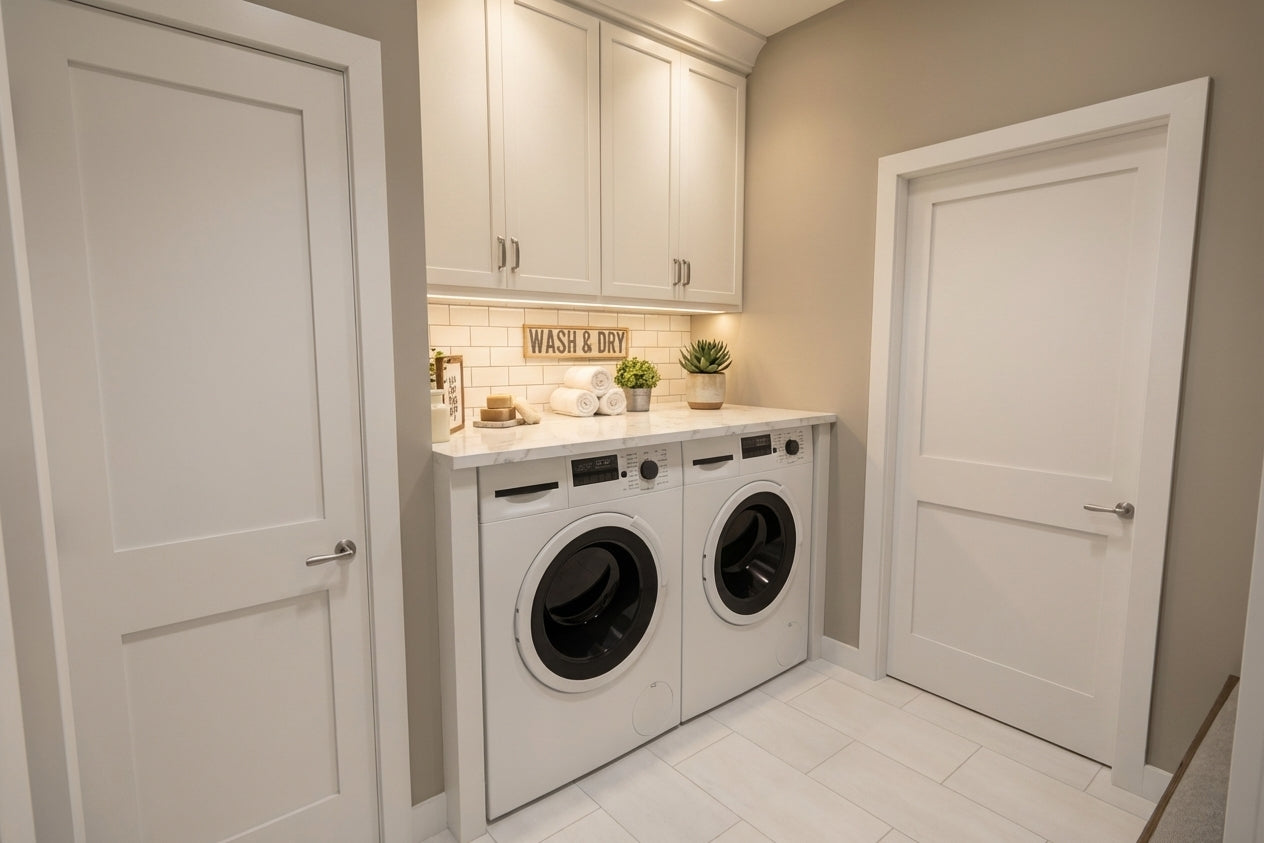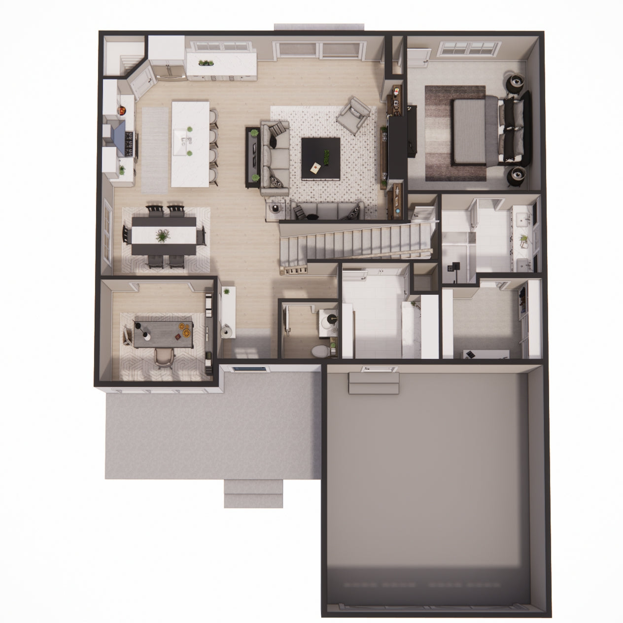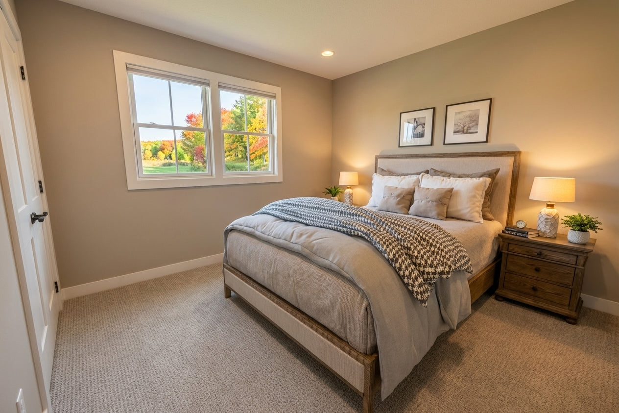 This charming Modern Farmhouse offers 2,126 square feet of thoughtfully designed living space, blending timeless curb appeal with a functional two-story layout. The exterior makes a striking first impression with crisp white horizontal lap and vertical board-and-batten siding, accented by decorative gabled rooflines and a welcoming 8x20 front porch. Inside, the main level features airy 9' ceilings and an open-concept heart comprising a family room with a cozy fireplace, a dedicated dining area, and a gourmet kitchen centered around a 3'-6" x 7' island and a walk-in pantry. Practicality meets style with a private home office near the foyer and a functional laundry-mudroom transition located just off the spacious two-car garage. The main-floor primary suite serves as a serene retreat, complete with a generous walk-in closet and private bath. Upstairs, 8' ceilings crown a versatile second level that includes two additional bedrooms, a shared full bath, and an expansive loft perfect for a media room. With an abundance of dedicated mechanical storage and a rear patio for outdoor enjoyment, this home masterfully balances stylish architectural character with the everyday needs of the modern homeowner.
