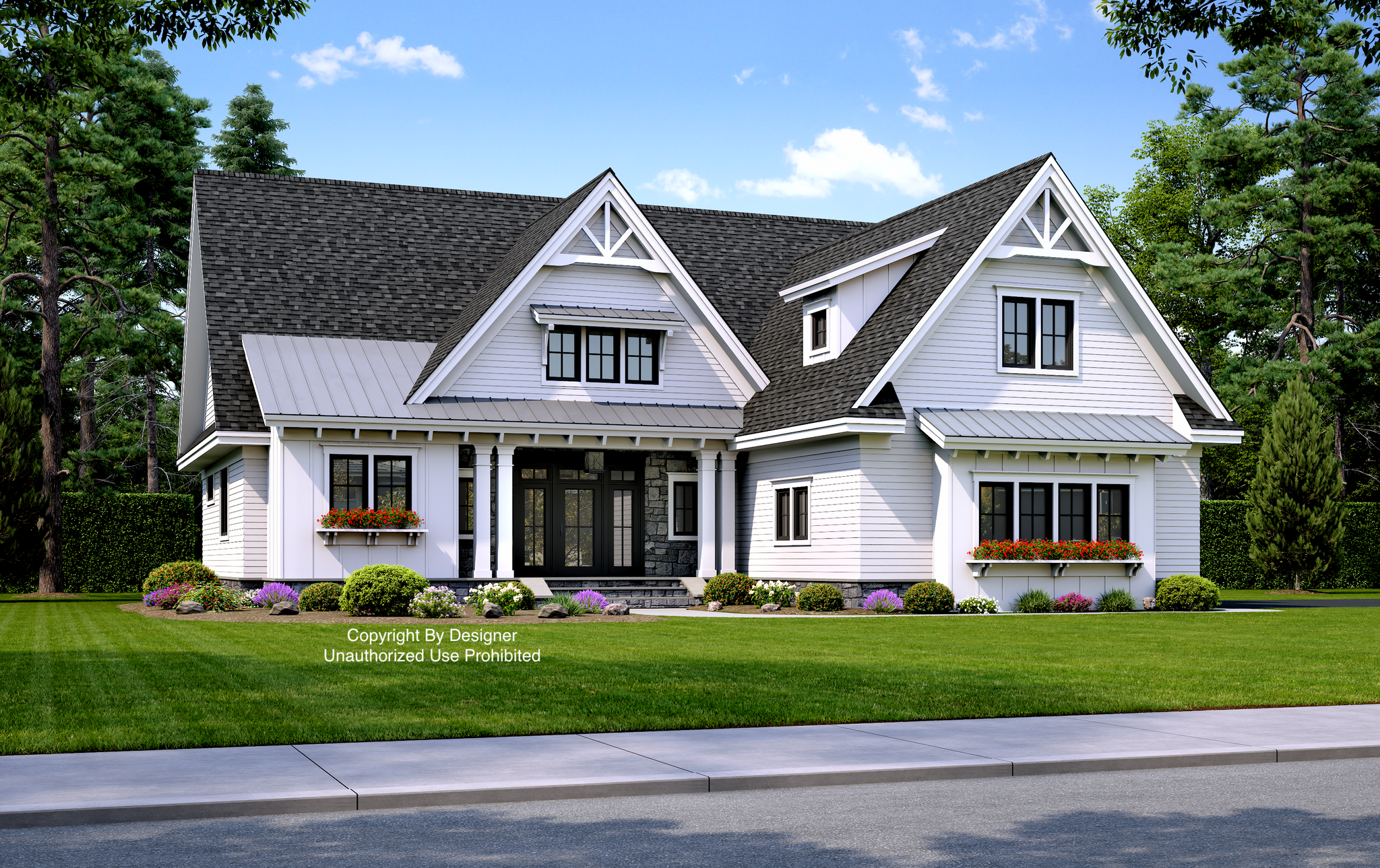 The elegant wood and stone façade of this 2046 sq ft Modern Farmhouse gives it loads of curb appeal! This home has 3 bedrooms, 2 full bathrooms and a ¾ bath, all conveniently located on one level. There are multiple garage options- 2 or 3 car and either front or side entry for all your storage needs. There is also a 361 sq ft optional bonus room.
