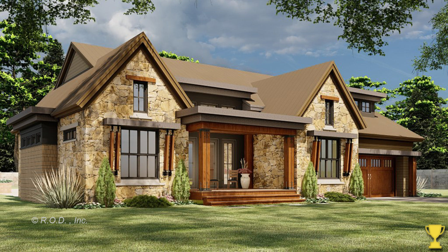 Ranch style homes, sometimes called American Ranch, or California Ranch, are an architectural style originating in the United States. The ranch style house plan is sometimes defined by it's long, close-to-the-ground profile, and wide open layout. This house style fused modernist ideas and styles with notions of the American Western period of wide open spaces to create a very informal and casual living style. The ranch was informal and basic in design, starting around the early 1960s, many ranch-style houses constructed in the United States (particularly in the Sun Belt region) were increasingly built with more dramatic features like varying roof lines, cathedral ceilings, sunken living rooms, and extensive landscaping and grounds.